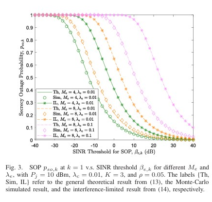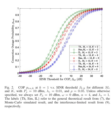 Abstract:This paper investigates physical layer security for a large-scale WSN with random multiple access, where each fusion center in the network randomly schedules a number of sensors to upload their sensed data subject to the overhearing of randomly distributed eavesdroppers. We propose an uncoordinated random jamming scheme in which those unscheduled sensors send jamming signals with a certain probability to defeat the eavesdroppers. With the aid of stochastic geometry theory and order statistics, we derive analytical expressions for the connection outage probability and secrecy outage probability to characterize transmission reliability and secrecy, respectively. Based on the obtained analytical results, we formulate an optimization problem for maximizing the sum secrecy throughput subject to both reliability and secrecy constraints, considering a joint design of the wiretap code rates for each scheduled sensor and the jamming probability for the unscheduled sensors. We provide both optimal and low-complexity sub-optimal algorithms to tackle the above problem, and further reveal various properties on the optimal parameters which are useful to guide practical designs. In particular, we demonstrate that the proposed random jamming scheme is beneficial for improving the sum secrecy throughput, and the optimal jamming probability is the result of trade-off between secrecy and throughput. We also show that the throughput performance of the sub-optimal scheme approaches that of the optimal one when facing a stringent reliability constraint or a loose secrecy constraint. Index Terms: Physical layer security, wireless sensor net works, random multiple access, outage probability, sum secrecy throughput, stochastic geometry.
